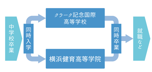 当学院は学校教育法にもとづく「技能教育施設」として神奈川県教育委員会から指定を受けており、広域通信制高校”クラーク記念国際高等学校”技能連携しています。